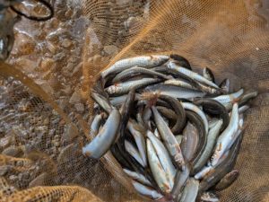 本日の河川状況です。 先日の雨の影響で、安倍川本川、中河内川、西河内川、藁科川、黒俣川は濁っています。河川回復にはしばらく時間がかかりそうです。足久保川、水見色川、新間谷川は澄んでいますが、苔が確認できません。餌釣りは、足久保川・松崎橋上で釣果があります。 次回更新は、7月22日(火)になります。 足久保川・松崎橋上(7月18日の餌釣り釣果)